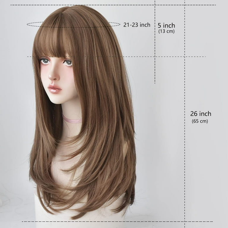 Hair Dye Wig For Women Synthetic Hair Natural Long Straight Wig With Bangs 22inch Honey Tea Walmart Com